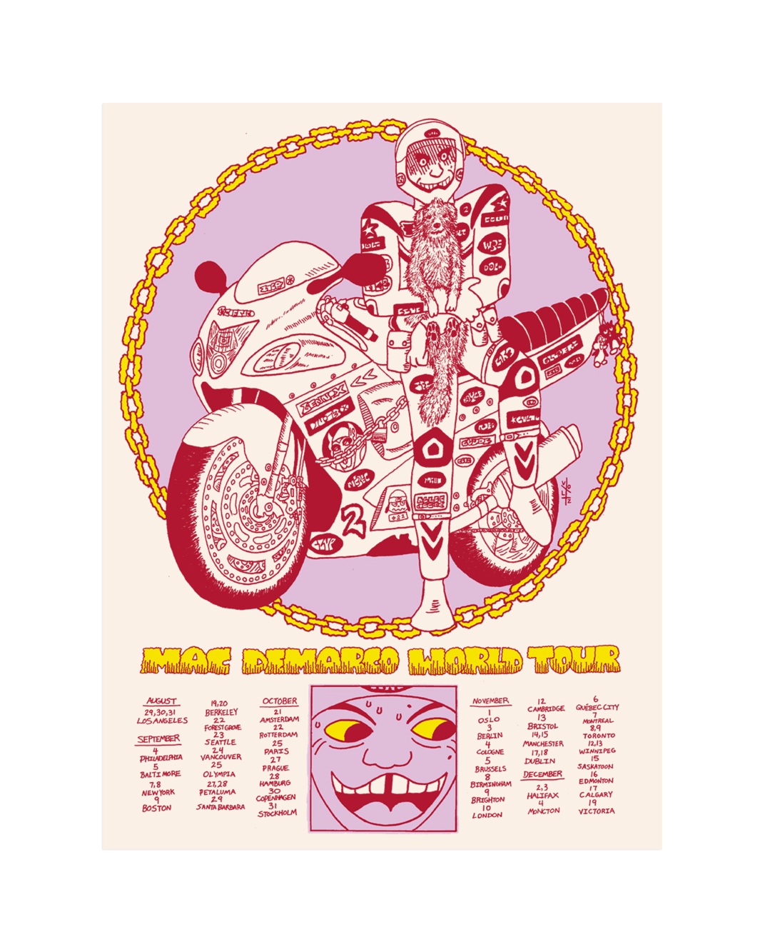 Relive the magic with the limited edition screen printed Guitar Tour Poster from Mac Demarco. Poster is 18” x 24”.